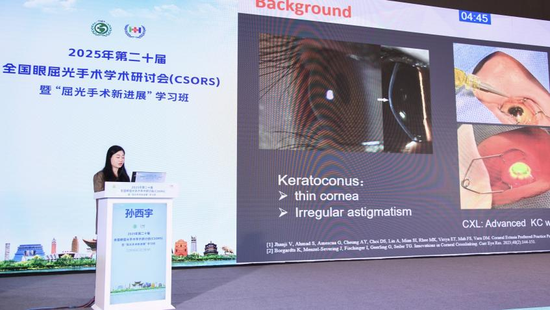 我院青年醫(yī)師也在論文發(fā)言環(huán)節(jié)展現(xiàn)出扎實的科研能力。孫西宇醫(yī)生報告了《基質(zhì)透鏡植入聯(lián)合角膜交聯(lián)術(shù)治療圓錐角膜術(shù)后的角膜穩(wěn)定性的一年結(jié)果》,通過一年隨訪驗證了該聯(lián)合手術(shù)方案在控制病情與維持角膜穩(wěn)定中的顯著效果。謝偲媛醫(yī)生分享了《角膜基質(zhì)透鏡植入聯(lián)合角膜交聯(lián)術(shù)對進展期圓錐角膜患者角膜形態(tài)及RGP驗配參數(shù)的影響》,為解決復雜屈光問題提供了新思路。