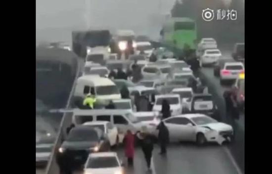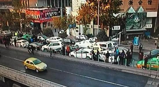 氣溫下降不僅讓市民感到寒冷,就連交通事故也多了起來。 因市政灑水路面結冰,西安市區西二環開遠門橋下橋口處發生多車相撞事故。