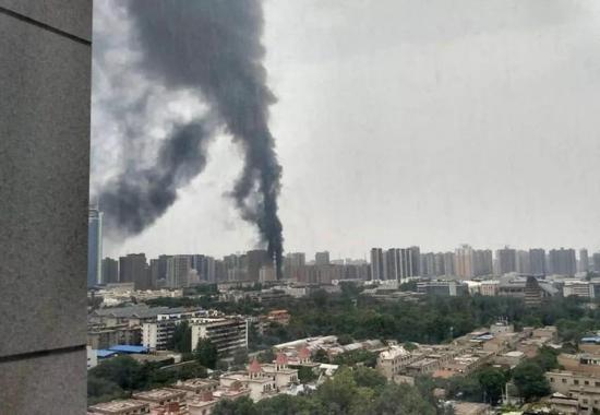 從多位目擊者拍攝的圖片和視頻來看,現場明火可見,黑煙直沖云霄,高達數十米,遠遠就能看到。