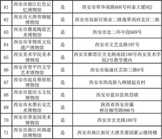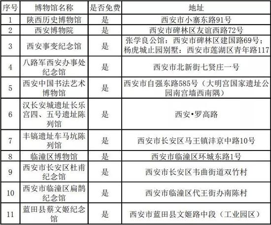其中,鐘鼓樓博物館、半坡博物館、西安關(guān)中民俗藝術(shù)博物館等半價(jià),陜西自然博物館當(dāng)天免費(fèi)發(fā)放2000張門票,西安曲江藝術(shù)博物館前200名游客可免費(fèi)領(lǐng)票。