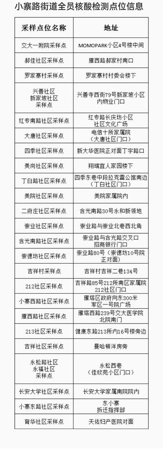 12月15日,西安雁塔區在轄區八個街道全面啟動全員核酸檢測,于當晚連夜開展,目前正在進行中。點位地址如下,請市民朋友就近選擇,主動前往檢測↓↓↓